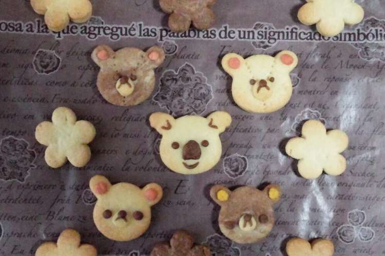 くま型1つで色々キャラ 型抜きクッキー レシピ 作り方 By 3匹の大ぶたママ クックパッド 簡単おいしいみんなのレシピが352万品