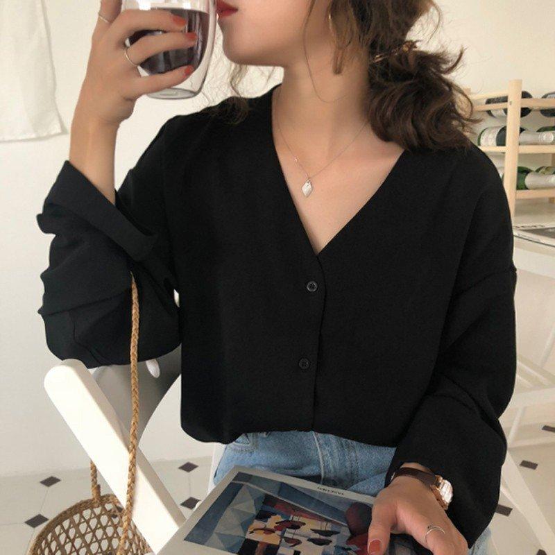 芸能人愛用 ブラウスシャツトップスオシャレレディースシフォンvネックビジネス開襟ブラウス長袖40代ゆったり上品大人22新作 長袖 カラー ブラック Www Mindthevoice Be